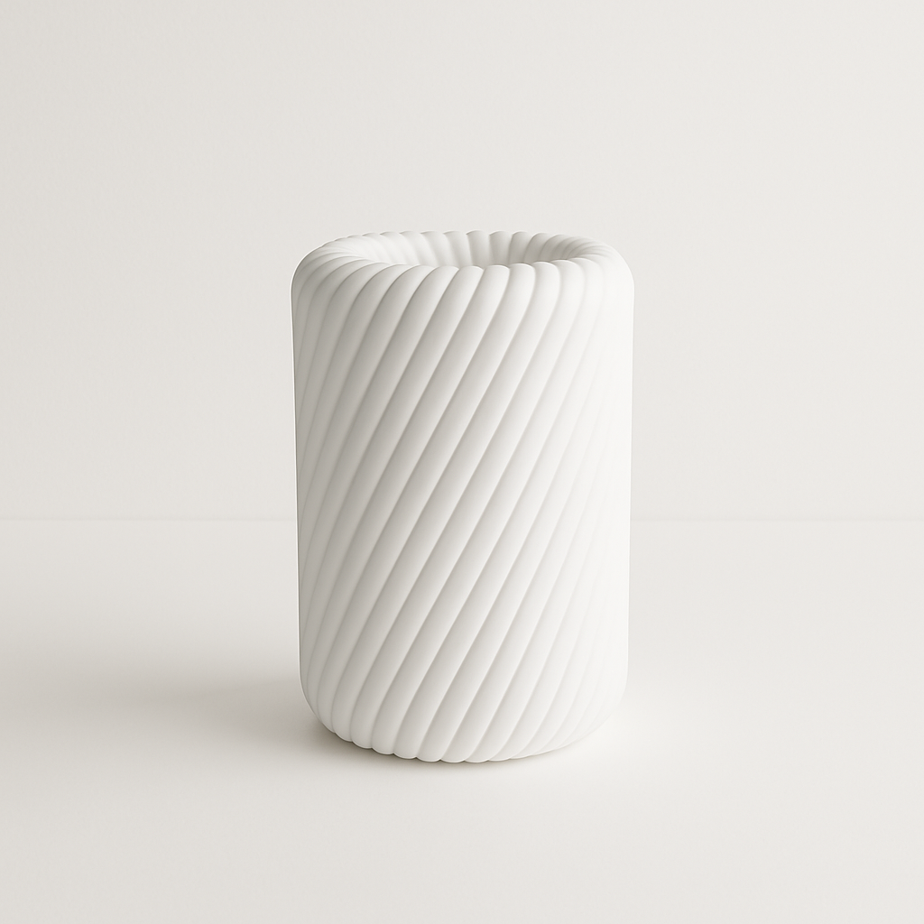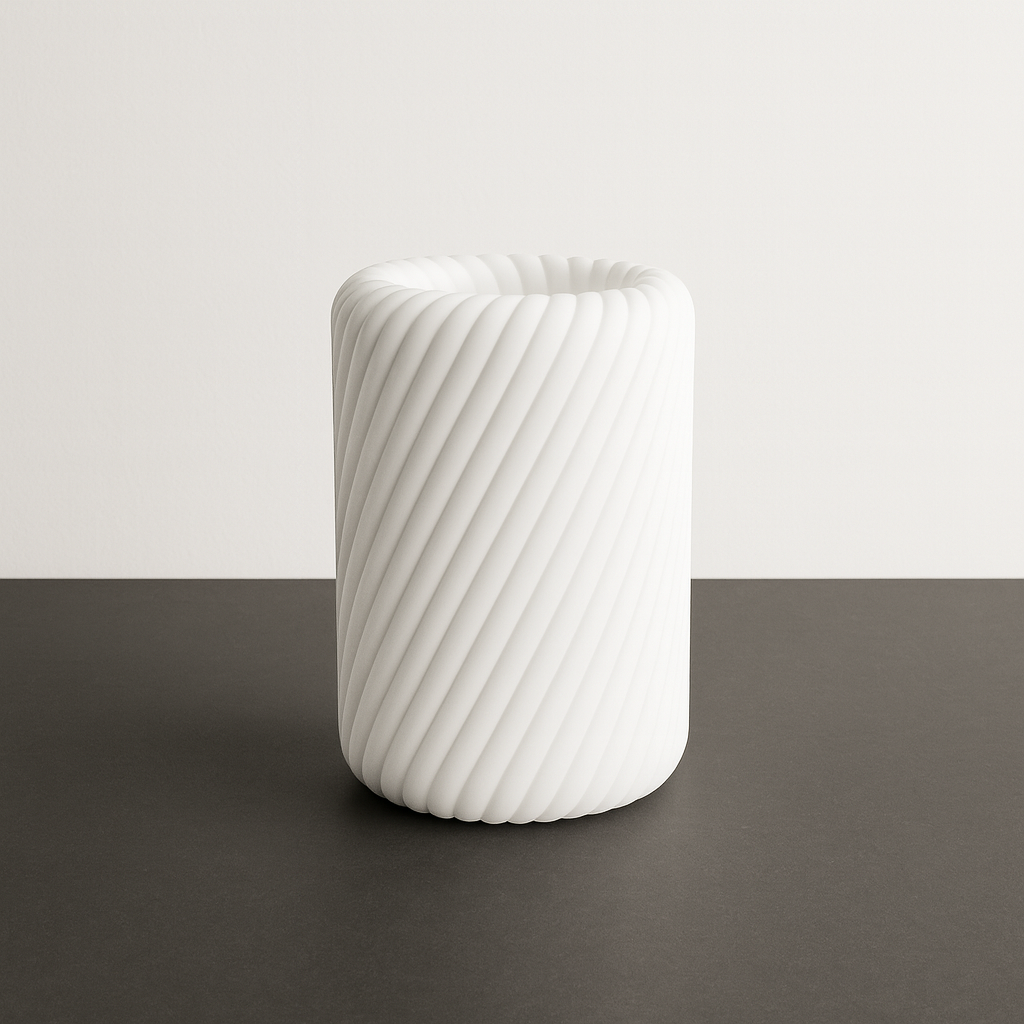 „Spiralia” to wazon, którego powierzchnia zdobiona jest dynamicznymi, spiralnymi liniami. Ten nietuzinkowy wzór sprawia, że wazon nabiera wyjątkowego charakteru i staje się dekoracją, która doskonale podkreśla nowoczesne aranżacje.
