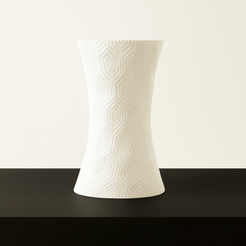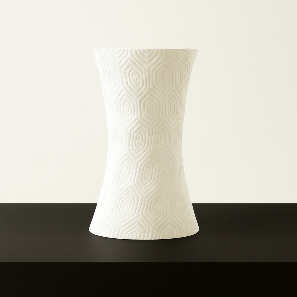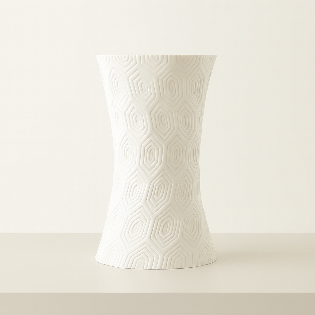 „Hexora” to designerski wazon o eleganckiej fakturze inspirowanej geometrycznymi wzorami. Jego smukła i lekko rozszerzana forma sprawia, że jest niezwykle stylowy i efektowny, jednocześnie zachowując minimalistyczny charakter. Dzięki temu pasuje zarówno do wnętrz nowoczesnych, jak i bardziej klasycznych.