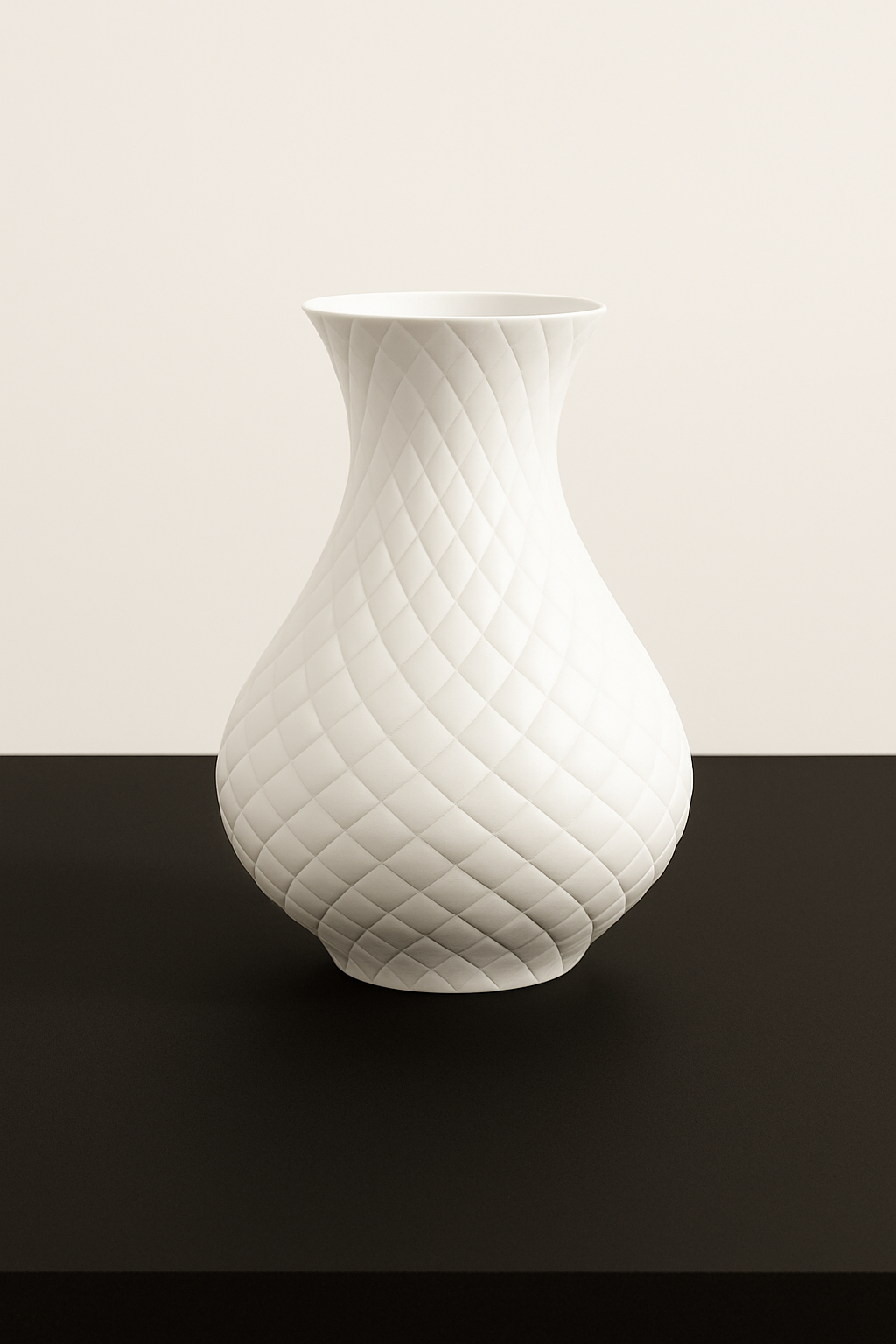 „Diamente” to elegancki wazon inspirowany szlifem diamentu. Jego geometryczna powierzchnia nadaje mu wyjątkowego uroku i sprawia, że jest ponadczasową ozdobą, pasującą zarówno do wnętrz nowoczesnych, jak i klasycznych. Może być używany zarówno jako praktyczny wazon na kwiaty, jak i dekoracja sama w sobie.