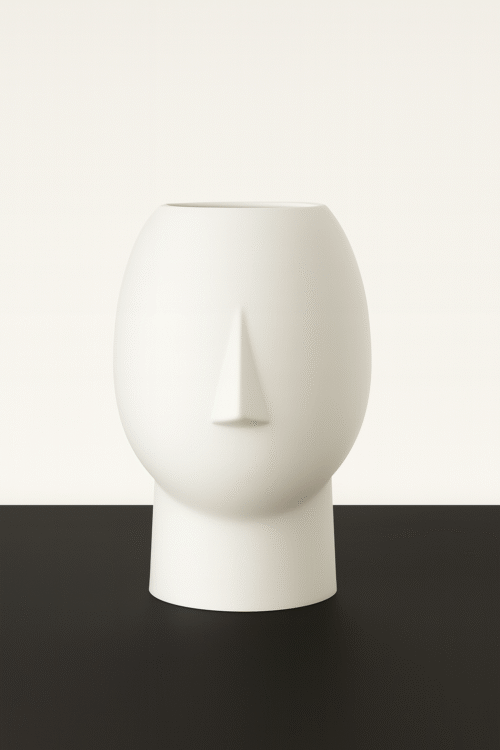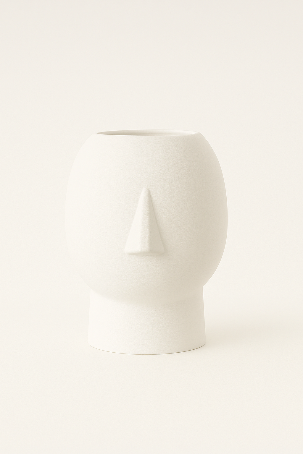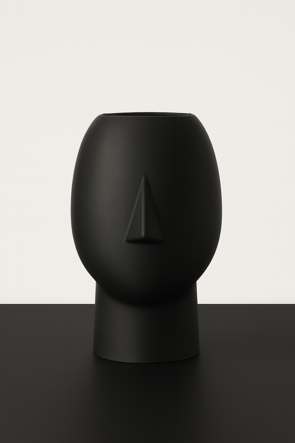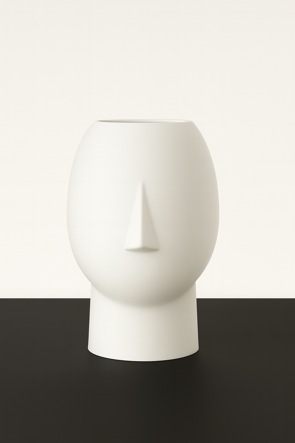 „Humano” to niezwykły wazon, który łączy minimalizm z awangardową formą. Jego powierzchnia inspirowana jest kształtem ludzkiej twarzy, co czyni go wyjątkową dekoracją i elementem sztuki użytkowej. To produkt, który nie tylko pełni funkcję praktyczną, ale również przyciąga spojrzenia i podkreśla charakter wnętrza.